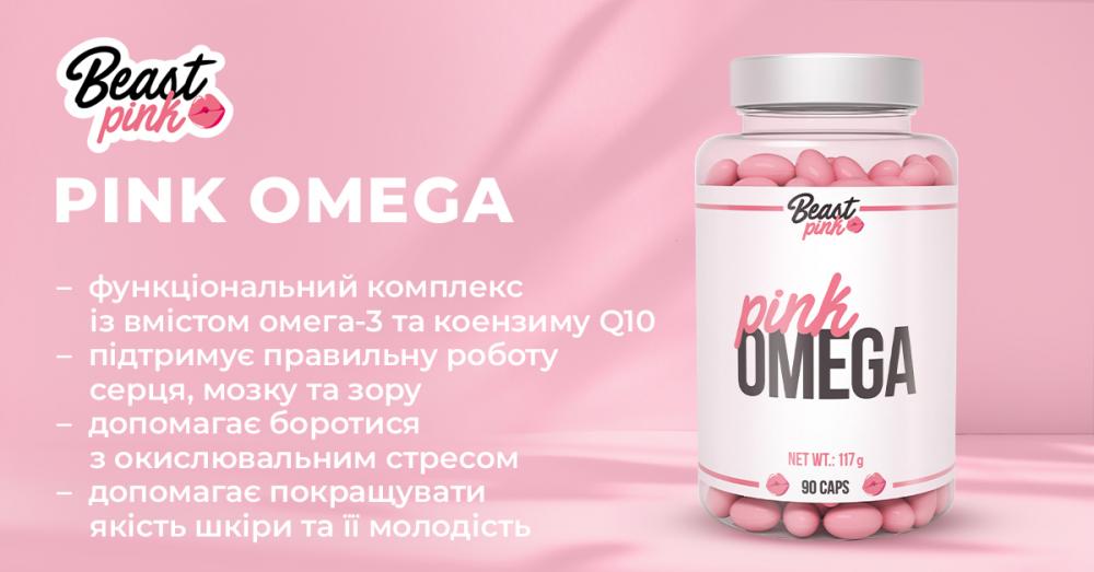 Омега Pink виготовляється в капсулах, розроблених спеціально для жінок та їхніх потреб. Продукт містить важливі омега-3 жирні кислоти EPA і DHA, обидві з яких позитивно впливають на роботу серця. Організм не виробляє їх самостійно, а це означає, що їх потрібно регулярно поповнювати. Продукт додатково збагачений коензимом Q10, який входить до складу клітин організму, де він сприяє виробленню енергії. Pink Omega ідеально підходить для підтримки молодості та загального здоров’я.
