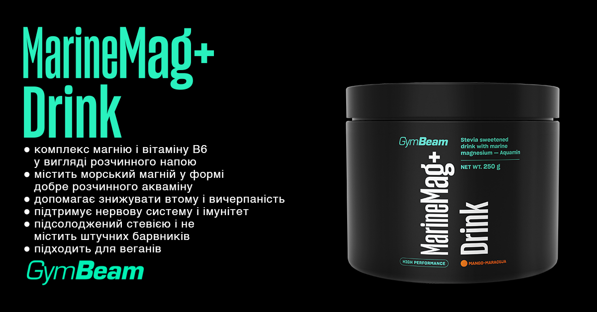 Marine Mag+ Drink - це унікальна миттєва суміш магнію у вигляді акваміну, який надходить з морської води та вітаміну В6. Тільки стевія, яка має нульову калорійність, використовується для створення приємного солодкого смаку. Завдяки обом інгредієнтам Marine Mag+ Drink сприяє нормальній роботі енергетичного обміну, оптимальній роботі психіки, нервової системи, зменшенню втоми та виснаження.